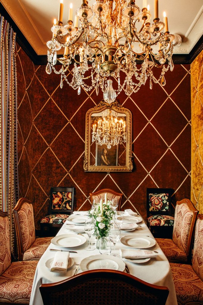 À l’étage se dévoilent les salons, petits et grands, tous craquants à s’offrir jusqu’aux balcons. Des espaces intimes qui se veulent confidentiels, professionnels ou lieux de fête, du déjeuner au dîner.